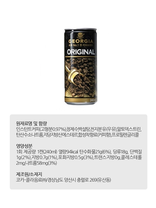 캔)조지아오리지널 /240ml*30 > 음료